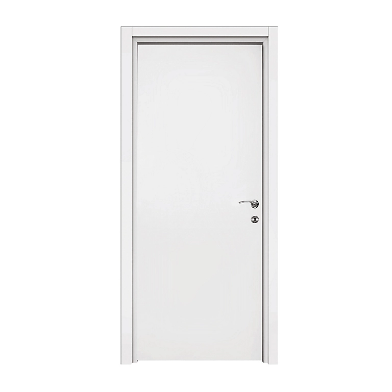 - Bloc-porte assemblé pour pose fin de chantier, peinture, sol… finis,pour une installation simple et rapide sans risque pour le bloc porte. Vantail à recouvrement mélaminé lisse, épaisseur 43 mm à âme alvéolaire. Porte montée sur 3 paumelles anuba réglables en 2 plans. Cadre de 54 mm assemblé à 45°. Réglable pour cloison finies allant de 52 à 80mm ( si cadre centré au mur). Couvre-joints fournis en MDF avec “ailettes” de dimensions 50 x 10 x 19 mm (tolérance +/- 1 mm). Le cadre et les couvre-joints permettent de récupérer un faux aplomb. Serrure mécanique à clef fournie. Serrure avec entraxe de 90 mm et carré de 8 mm. Il est conseillé d’utiliser des poignées sur rosace.En option, vendu séparément: Poignées, serrure mécanique à condamnation ou cylindre. Existe en 3 coloris et 2 dimensions.