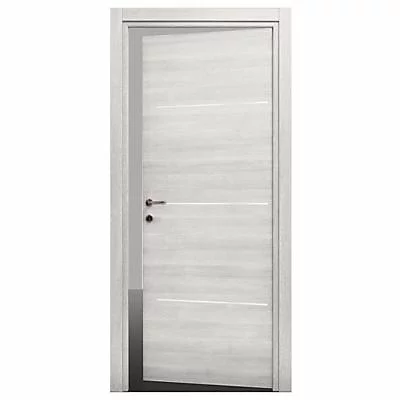 Bloc porte modèle TRIACONTA finition blanchi, 3 inserts horizontaux aluminium satiné, H 204 X L 73 cm poussant droit