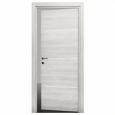 Bloc porte modèle TRIACONTA finition blanchi, 3 inserts horizontaux aluminium satiné, H 204 X L 83 cm poussant droit
