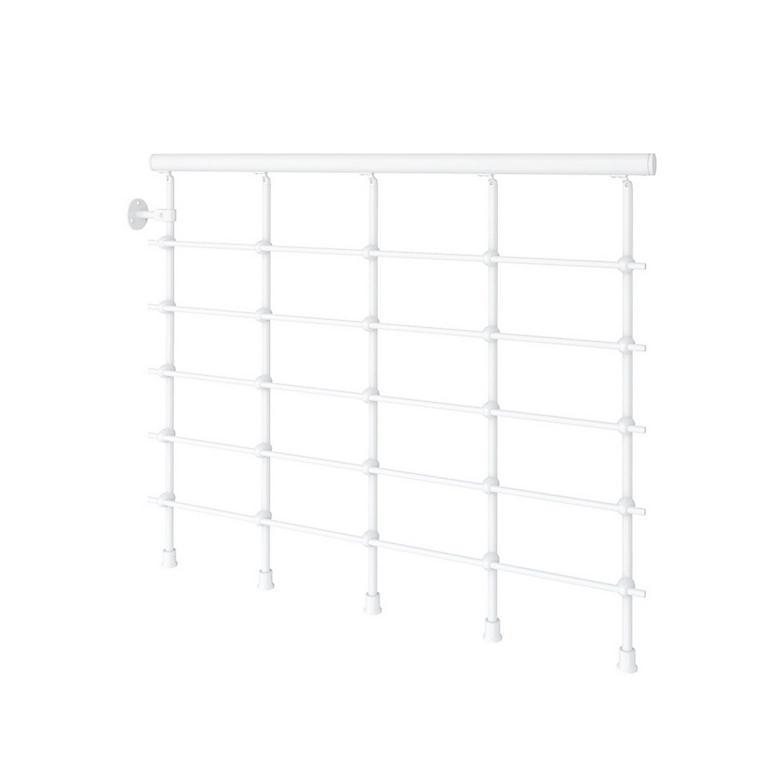 | Fourni avec | 4 colonnettes en acier peint, 5 lisses (tubes parallèles) en PVC blanc et 1 main courante |