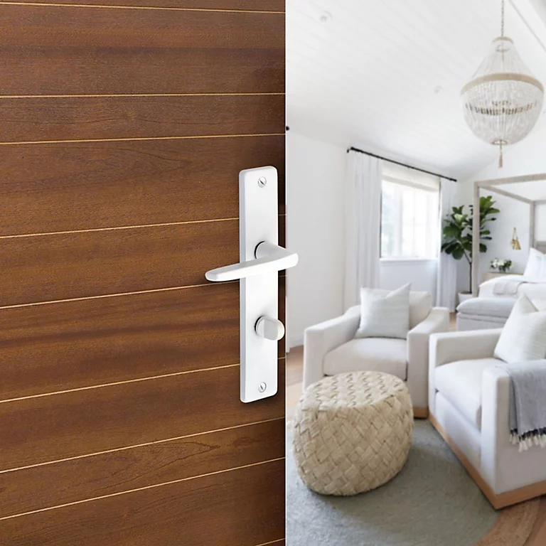 Ensemble poignée sur plaque rectangulaire à condamnation Colan satin blanc L.106mm x l.39.8mm entraxe 195mm