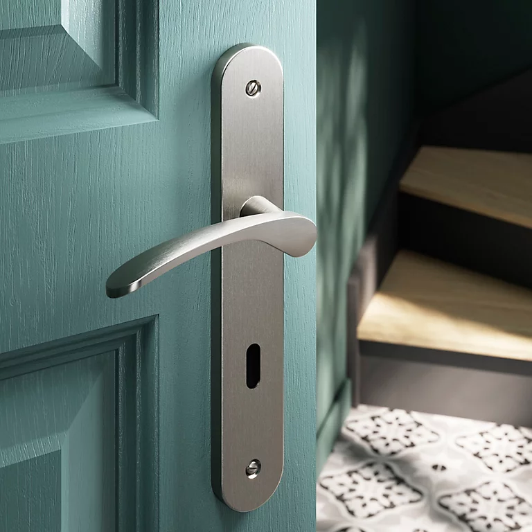 - Poignée de porte tendance sur plaque offrant une touche décorative à votre porte