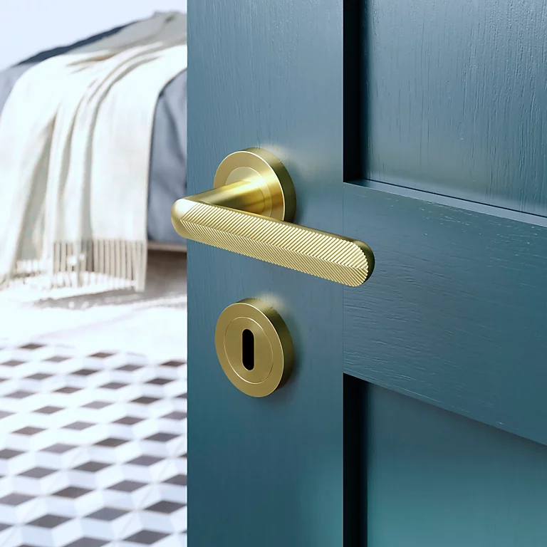 - Disponible en plusieurs finitions, cette poignée de porte sur rosace peut être associée à des poignées et des boutons de meuble de la même gamme pour créer un style coordonné