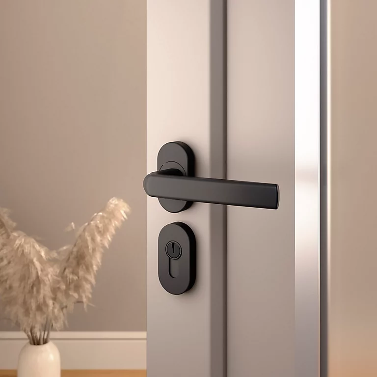 - Poignée de porte tendance sur rosace offrant une touche décorative à votre porte