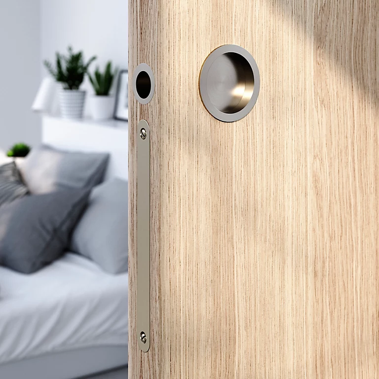 - Disponible en plusieurs finitions, cette poignée de porte coulissante peut être associée à des boutons et des poignées de porte, des poignées de fenêtre ou des poignées et des boutons de meuble de la même gamme pour créer un style coordonné