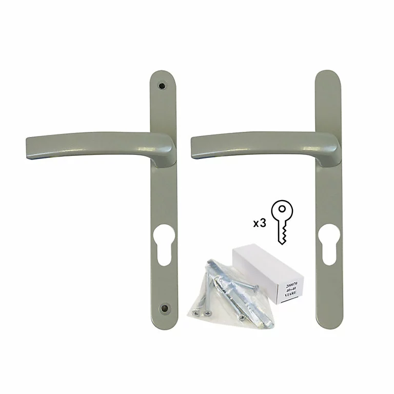 Poignée alu carré cylindre argent pour porte fenêtre bois