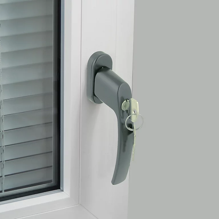 Poignée de fenêtre Minianc avec clé PVC fer aluminium gris l.2,9 x H.15,4 x P.6 cm